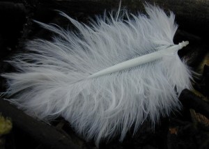When I began my walk at the high school track this morning, I noticed that a white feather was right in front of me.