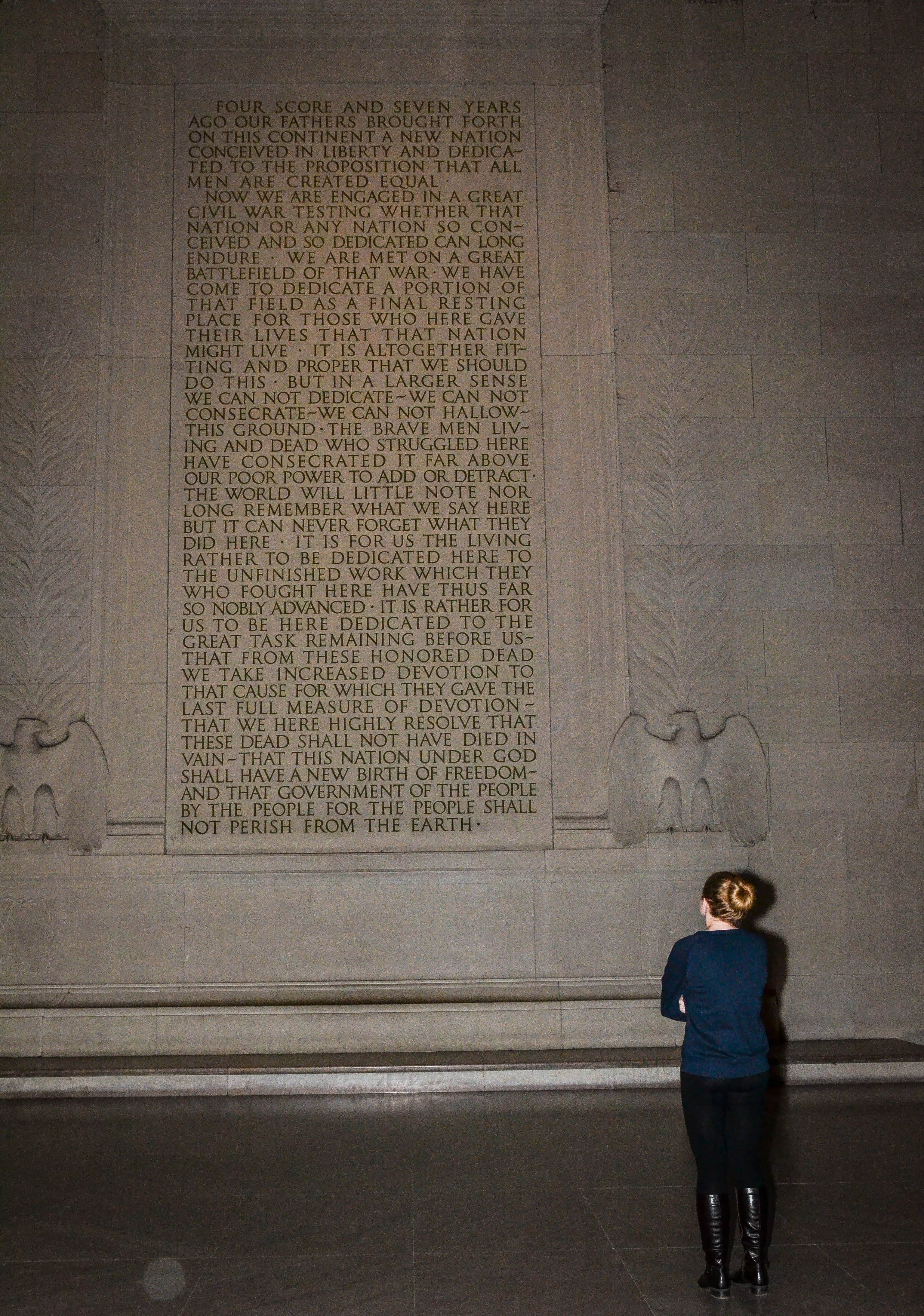 The last time we were there in 2004, she was only 6 years old. She was very excited to see the monument of her favorite president, Abraham Lincoln. She hurried to the area where the Gettysburg Address is carved into the wall. She took a seat on the floor and there she sat, cross-legged, and began to read. When she was done, her dad sat down to join her and they had a good, long talk about Lincoln.