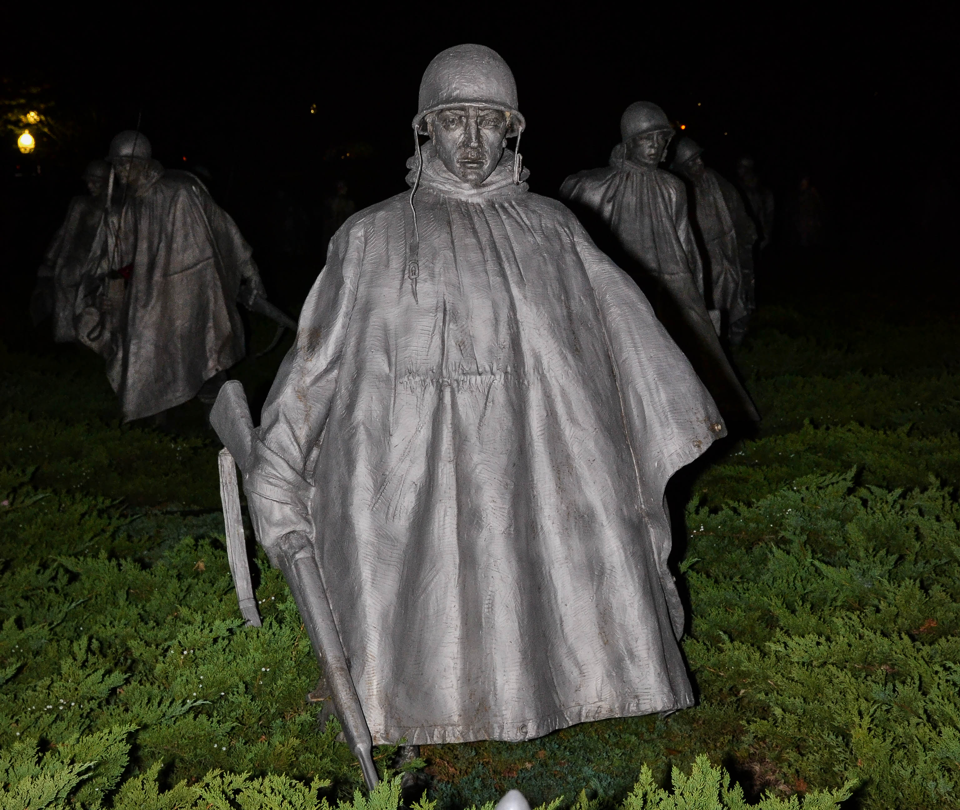 Our next stop was to visit the Vietnam and Korean War memorials. My dad was a veteran in the Korean War (Air Force). The statues looked particularly ghostly at night.